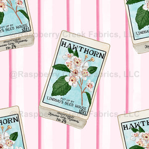 Missouri, Hawthorne, floral, pink, green, white, home grown, state flower, women, girls, summer, spring, vintage seed packet, stripes
