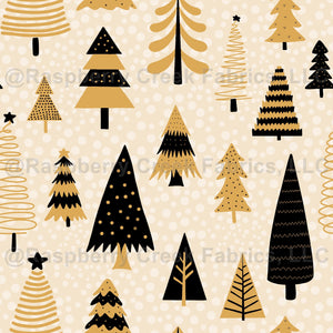 Mod Winter Forest Holiday Christmas Trees in Black and Gold