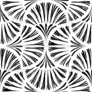 A modern Art Deco pattern of ink black painterly brush strokes on white creates a stylized thistle pattern