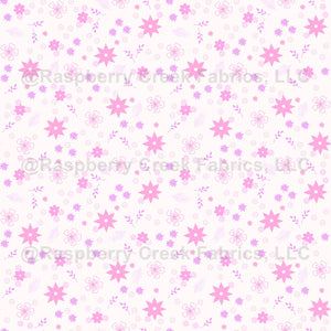 Soft rose pink ditsy floral with small scattered blooms. Small- scale design suits dresses, crafts and spring summer projects