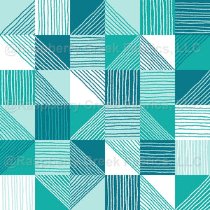 Modern Geometric Checks and Lines, Stripes, Lagoon, Blue, Turquoise, Aqua, White, Coastal