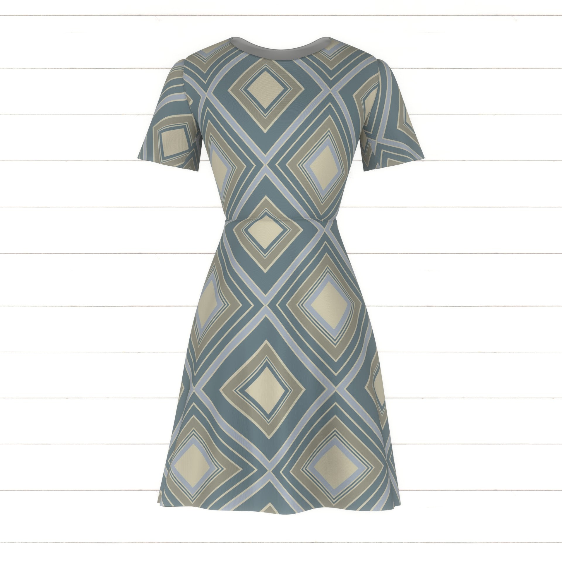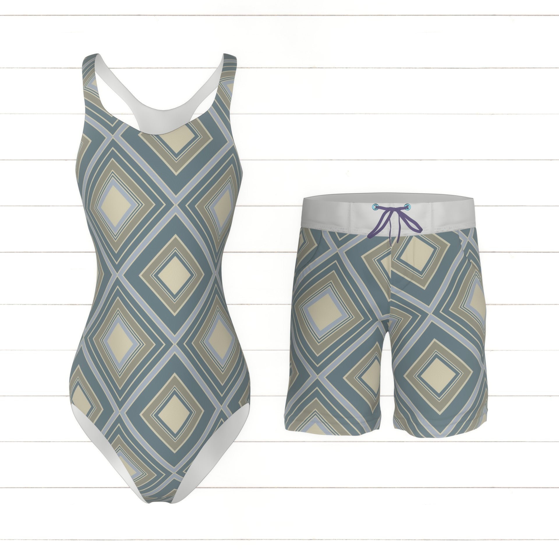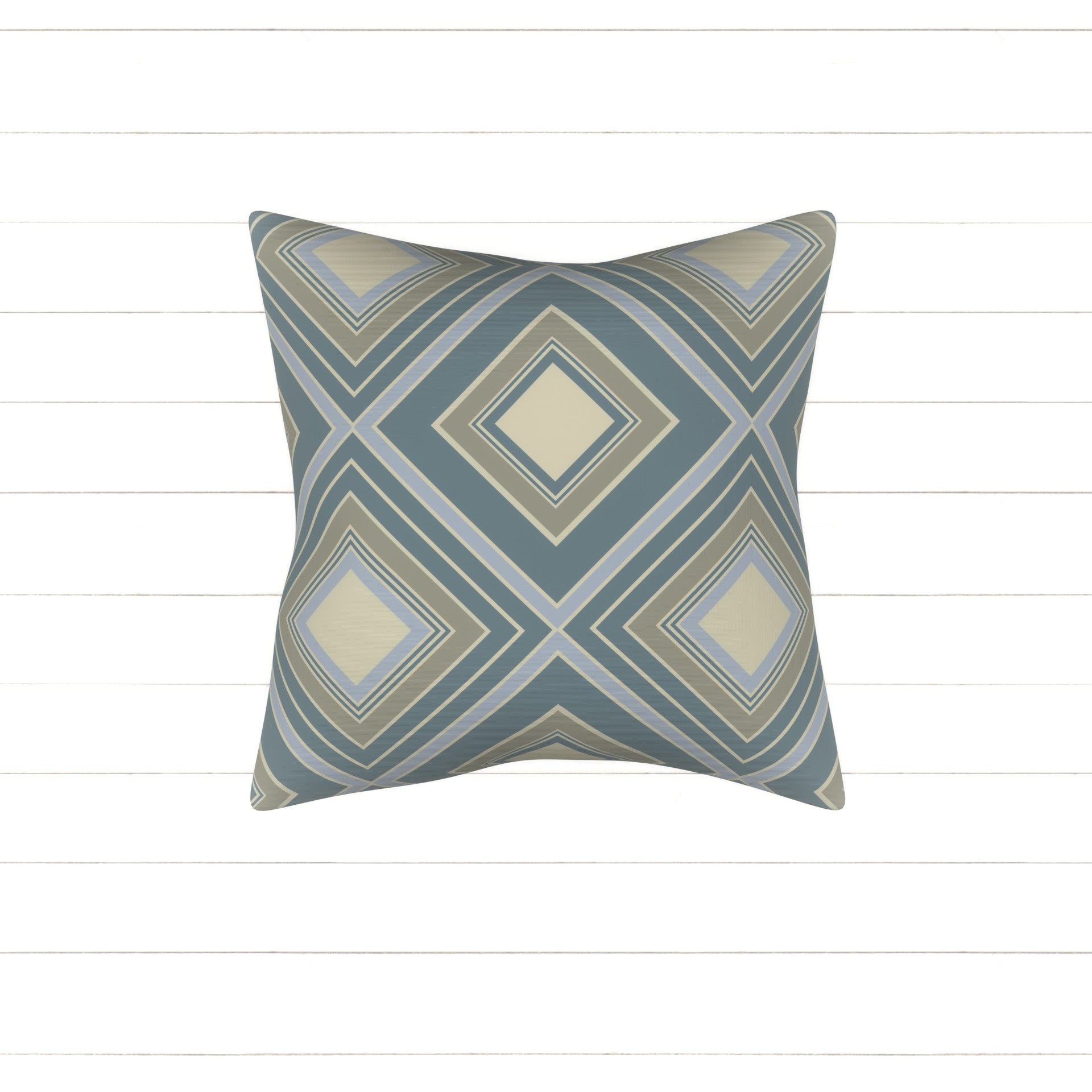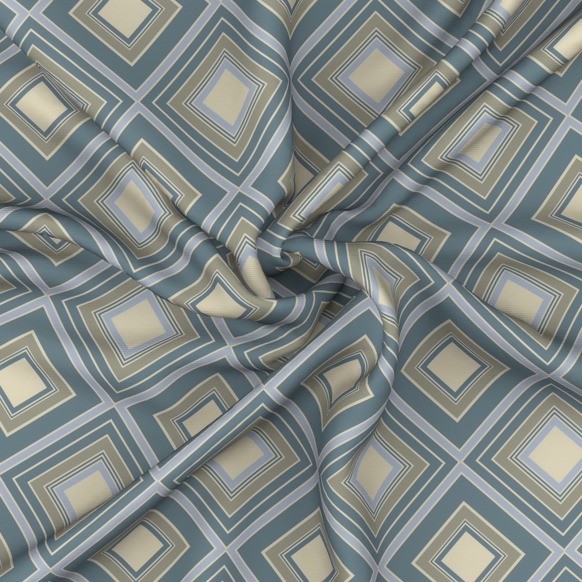 Modern geometric diamonds and concentric squares in varying thickness in dusty vintage blue grey