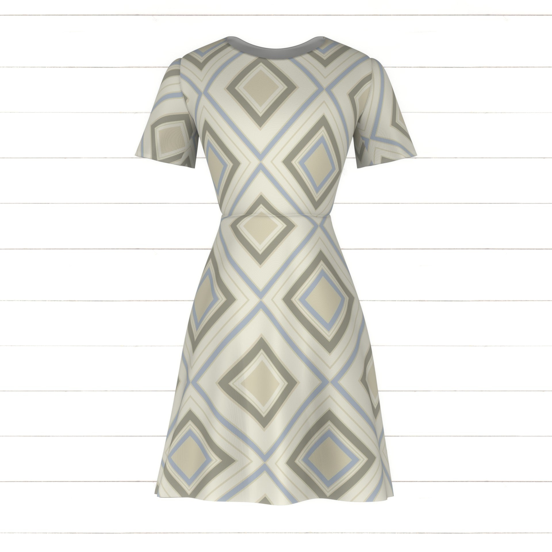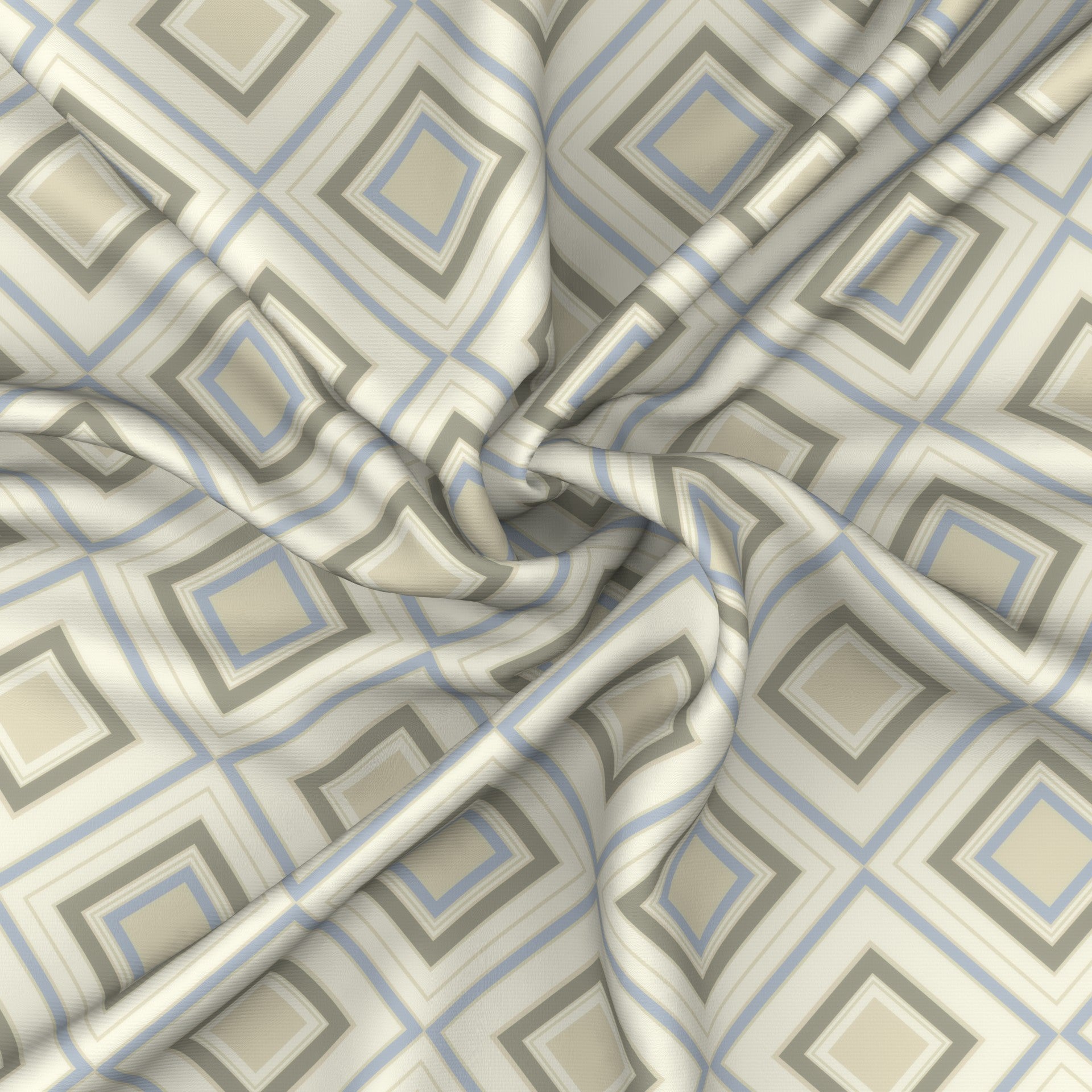 Modern geometric diamonds and concentric squares in varying thickness in ivory beige