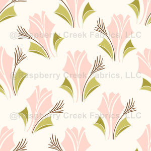 Modern, Pale Pink, Pale Green, Lilly, Cream Background, Art Nouveau Style, Botanical