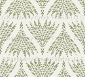 A symmetrical design with stylized fantasy plants. Bohemian stylized leaves bunches with sage green neutral colors.