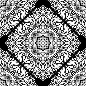A touch of geometric elegance in a diamond tile pattern using our abstract floral monochrome mandala in white on black.