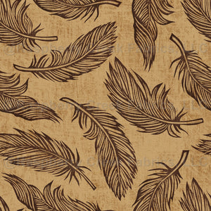 Minimalistic hand stamped feather pattern with grunge and kraft paper textures.