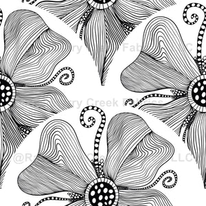 Monochrome Topography Flower Tangle Art Deco Scallop