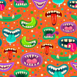 Monster Mouths Funny Fangs Vampire Teeth and Tongues on Orange