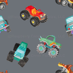 Monster Trucks Watercolor Dark Gray. Colorful monster truck vehicles.