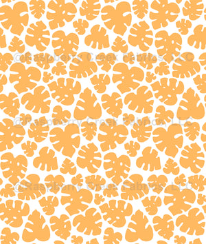 Tropical monstera leaves in a yellow color with a white background.
