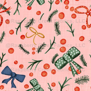 Moody holiday design with elegant bows and berries in rich, deep tones. Ideal for unique festive decor, tabletop, and holiday crafts.