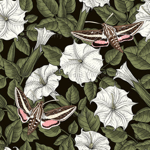 Hand-drawn pattern with moonflowers