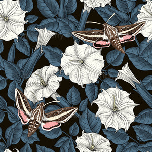 Hand-drawn pattern with moonflowers