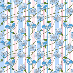 Morning Glory Flowers on Carnival Stripes Blue