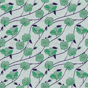Morning Glory Flowers on Muslin Look Green Fabric