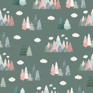 Mountains and Trees - Alpine Lullaby on Dark Gray-Green