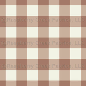 Rustic warm classic farmhouse buffalo check gingham plaid using Pantone's CotY 2025 Mocha Mousse warm brown taupe and Relaxed Elegance Cannoli Cream.