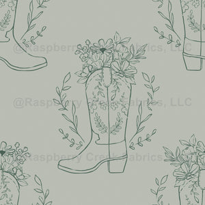 Muted Blue Sketched Cowgirl Boot Floral Drawing