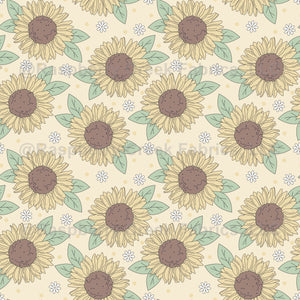 "Muted Sunflower Print" is a sophisticated and subdued seamless pattern featuring illustrations of sunflowers in muted and earthy tones. This design captures the timeless and refined beauty of sunflowers, making it an elegant choice for projects that seek a subdued and muted aesthetic while embracing the charm of these iconic blooms.
