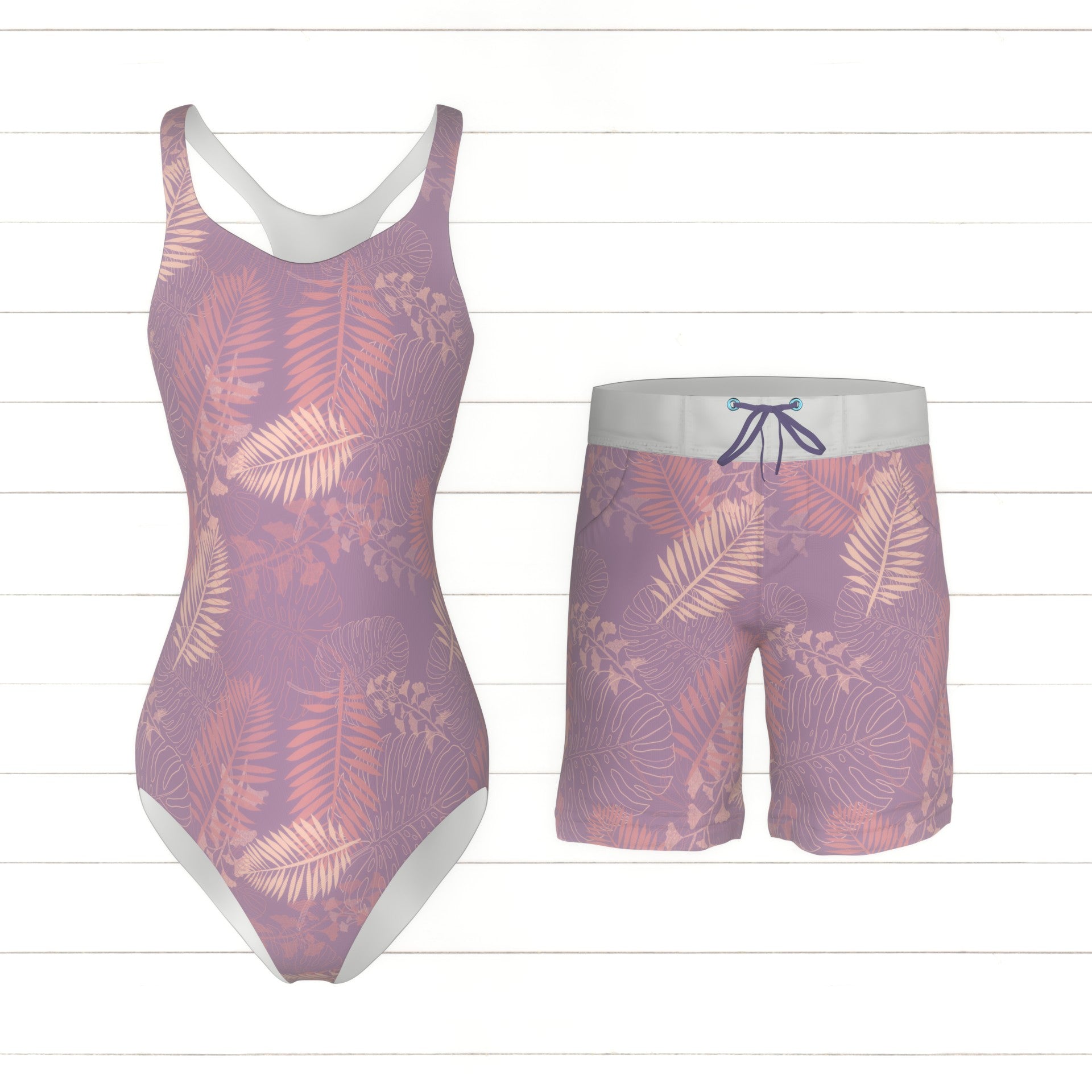 Muted Tropical Leaves tonal pink and purple palms
