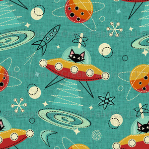 My original vector illustration of kitties flying UFO's, in an outer space adventure! ©Christine Duffield
