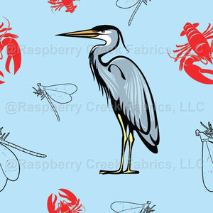 This design was inspired by a summer trip we took to a farm in Nashville. It was called Blue Heron Farm and we caught crawdads and saw dragonflies flitting about the creek. Printed on board short cloth, this design makes for some great swim trunks.