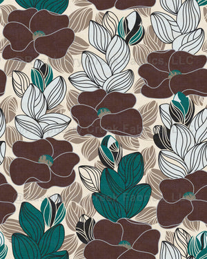 Everything is in the flow. Timeless floral pattern in warm, moody natural colors in lineart style inspired by stylish mid-century designs.