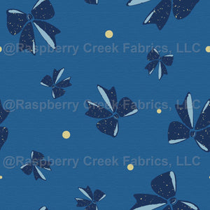 Navy and Dusty Blue Coquette Bows with Warm Gold Circles on Textured Blue - Art Deco Navy Blue Plume by Dawn K Designs