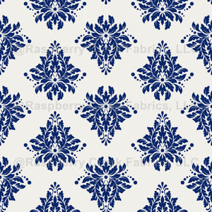Navy Blue on Ivory Damask