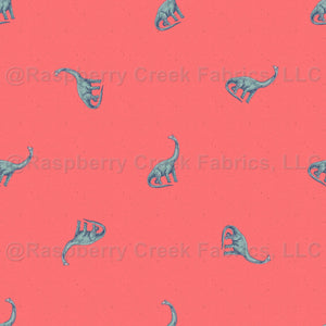 Navy Mint and Bright Pink Vintage Look Brontosaurus Dinosaur Print Fabric, Summersaurus by Bri Powell
