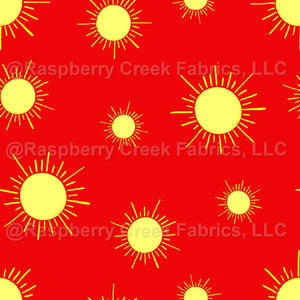 Neon Yellow Sun on Red 6" repeat, Neon Summer Collection