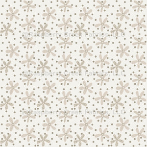 Hand drawn boho designs on the daisy petals with a cream background and dark taupe polka dots.