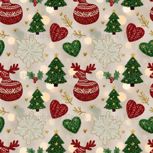 New Year's atmosphere, Christmas trees, reindeer balls, texture for fabric