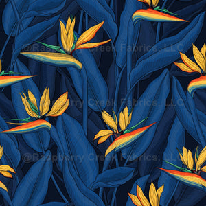 Hand drawn seamless pattern with bird of paradise flowers