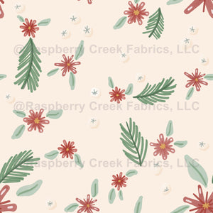 non directional, floral, beige, holiday, girls, kids, flowers, leaves, poinsettia, small, red, green, christmas, cream