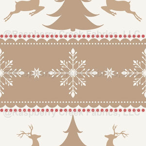 Nordic Christmas - Reindeer & Snowflakes Fair Isle Sweater In Tan & Red