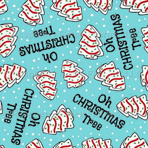 Oh Christmas Tree Snack Cakes and Sprinkles on Blue