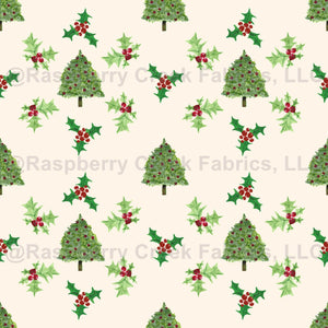 Oh Christmas Tree, Watercolor Christmas Tree and Holly Berries on a light beige color background.