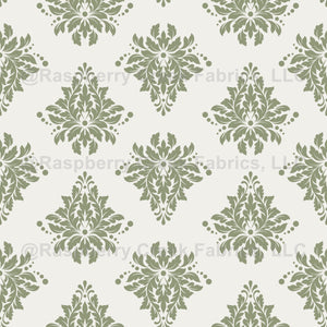 Olive Green Damask on Ivory