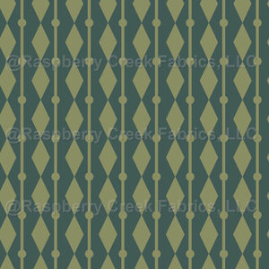 Olive Green Diamonds Circles and Vertical Lines on Forest Green Fabric - Art Deco Dusty Pink Plume
