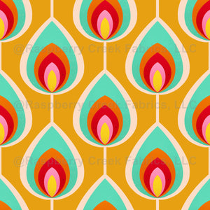 Orange and turquoise retro peacock feathers wallpaper