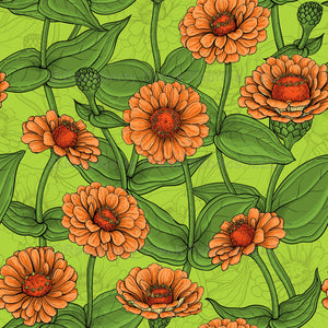 Hand- painted zinnia flowers vector pattern