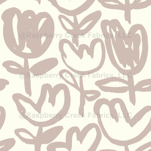Organic boho floral design with hand painted brush flowers in beige neutral colors