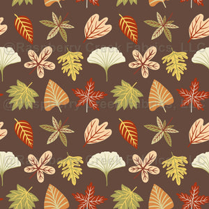 A pattern design featuring a variety of autumn leaf illustrations in cozy hues.
