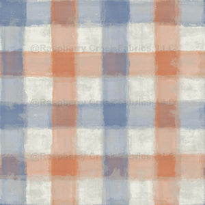 Painted Gingham Plaid - Blue, Orange, Light Beige