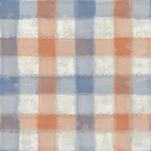 Painted Gingham Plaid - Blue, Orange, Light Beige