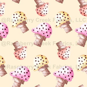 Painterly Ice Cream Cones in yellow, pink and Peach on a pastel yellow background