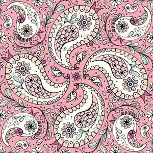 Paisley birds in baby pink