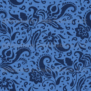 Classic paisley in traditional blue colors on a linen look background will coordinate with denim jeans to summer whites.